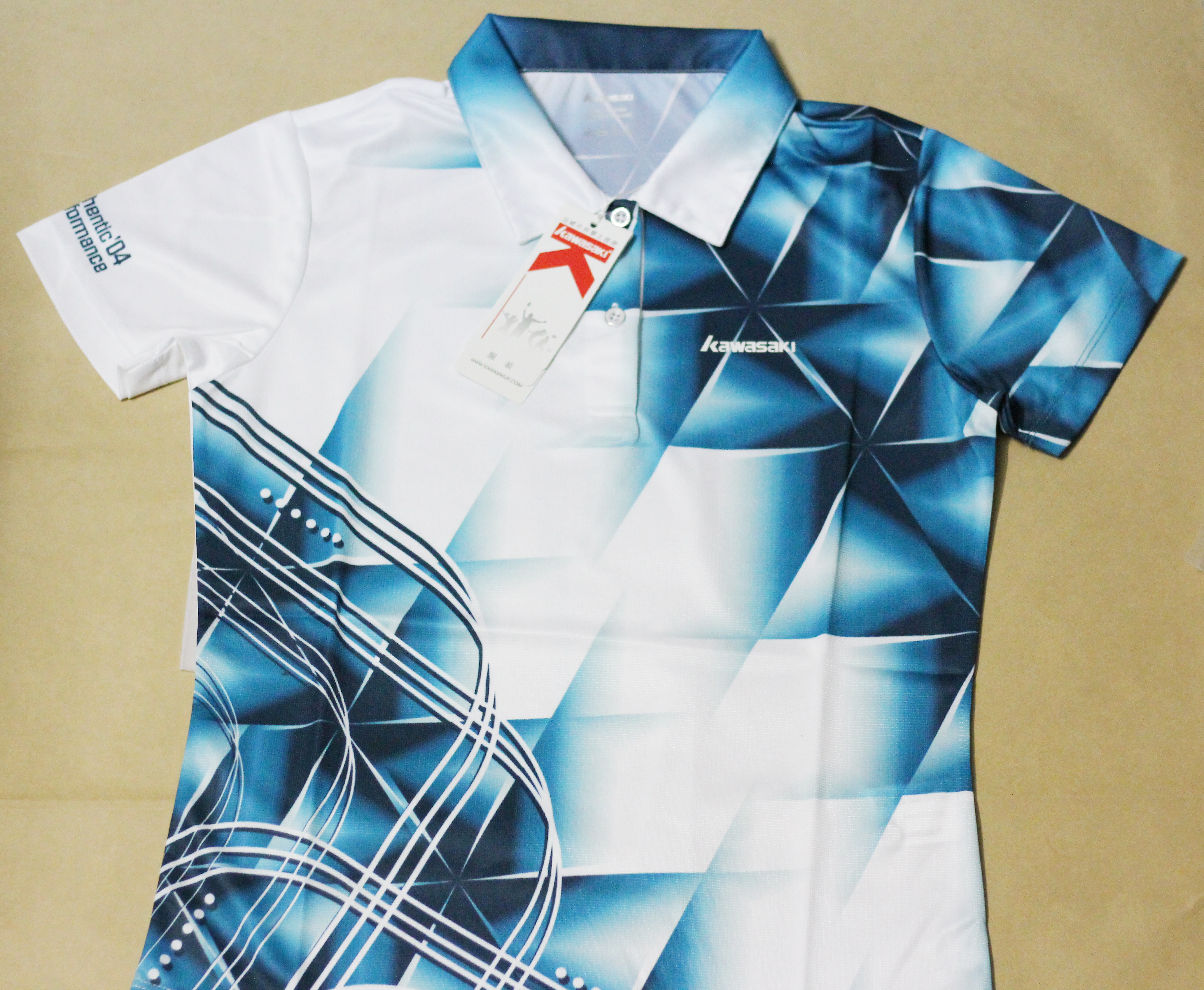 Khi du lịch đến đất nước Nhật Bản chắc hẳn sẽ làm các bạn thất hết bất ngờ này đến bất ngờ khác đây là một đất nước rất phát triển ví dụ như ở lĩnh vực thể thao đất nước này có rất nhiều thương hiệu thể thao nổi tiếng như là thương hiệu kawasaki. Về sản phẩm áo cầu lông của hãng chắc sẽ làm các bạn ngạc nhiên về sự thu hút của các họa tiết trên chiếc áo cầu lông. Màu trắng kết hợp với xanh ngọc cùng những họa tiết không theo logic tạo nên sản phẩm áo cầu lông kawasaki xanh ngọc-trắng