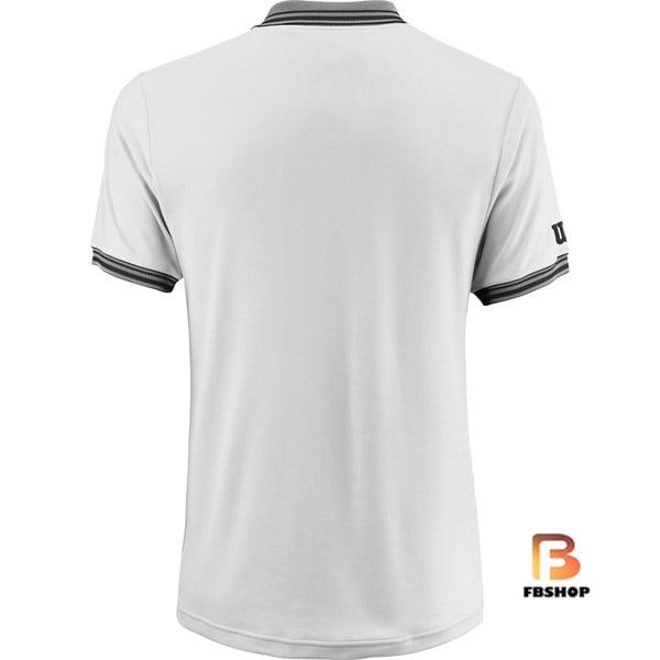 - Áo Tennis Wilson Mens Team Polo White mang màu trắng sáng, lịch lãm, cổ áo được nhấn màu xám, đen tạo điểm nhấn cho sản phẩm.