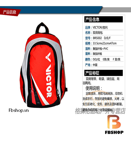Balo Cầu Lông Victor BR5002 D | Đỏ tươi rực lửa