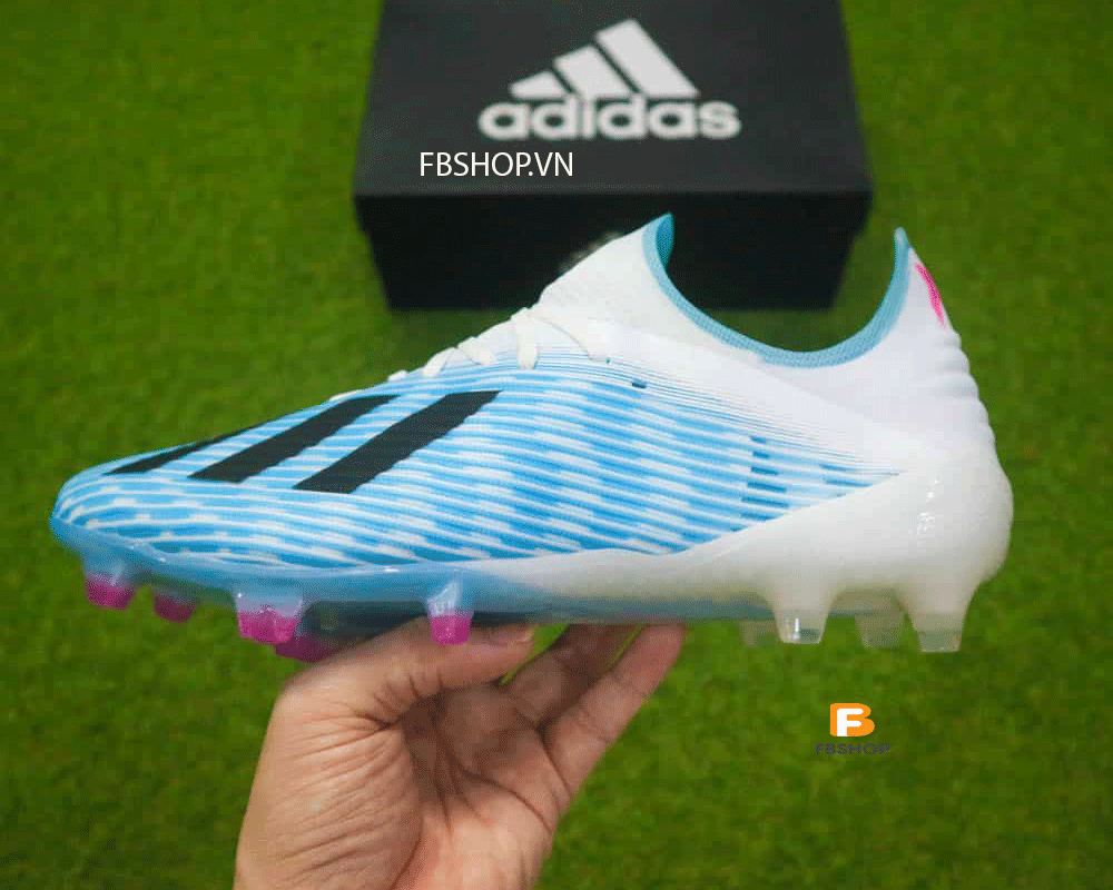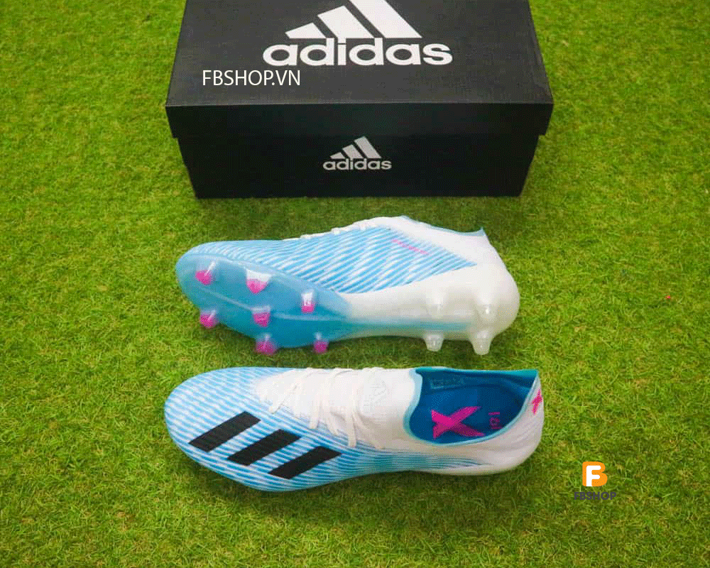 Giày bóng đá Adidas X19.1 FG xanh nhạt trắng tự tin sải bước