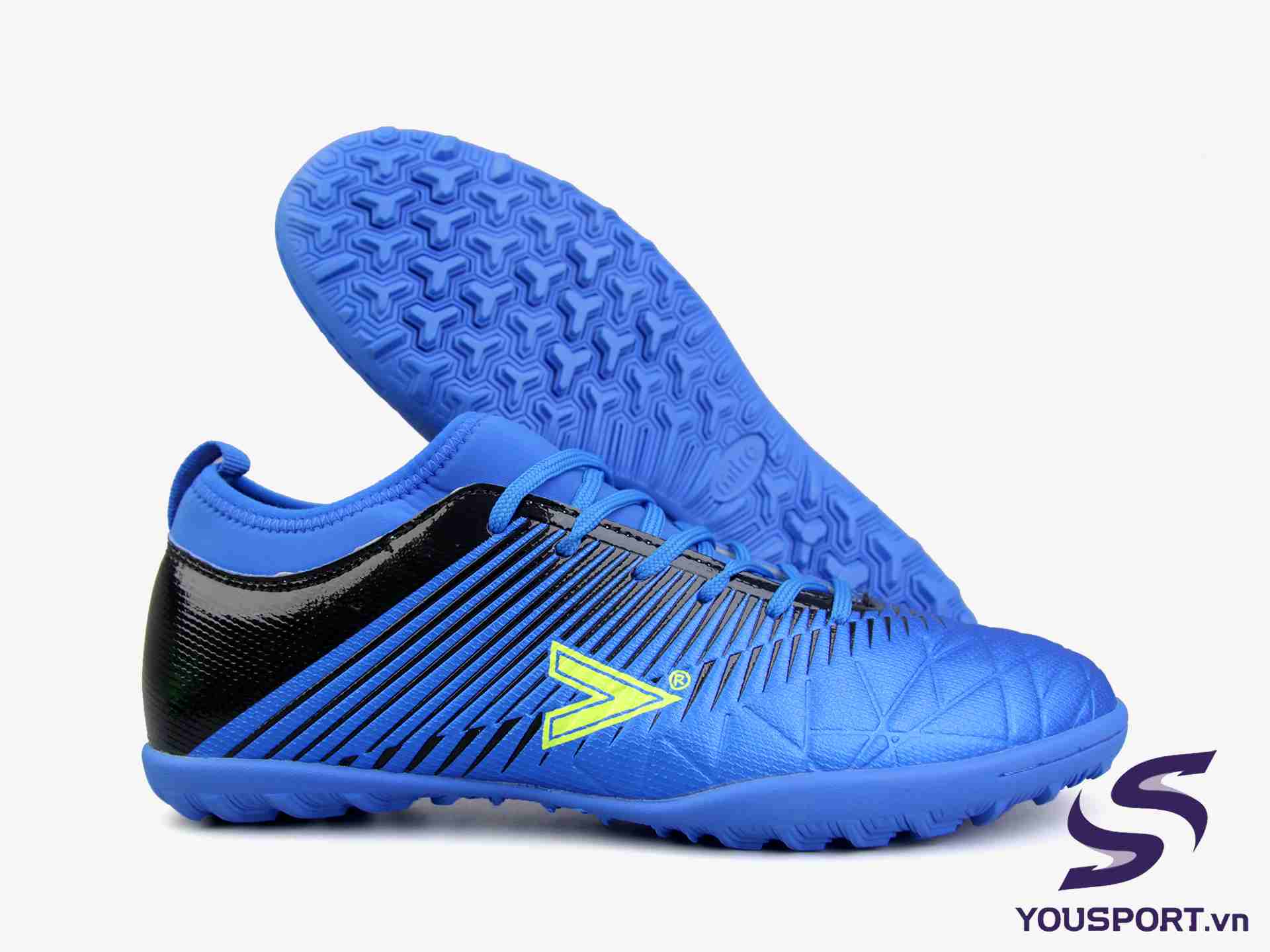 - Đế giày thiết kế bám dính:” mặt đế giày thiết kế nhiều dãnh sâu nhằm tăng độ bám dính và độ ma sát trên sân cỏ.
