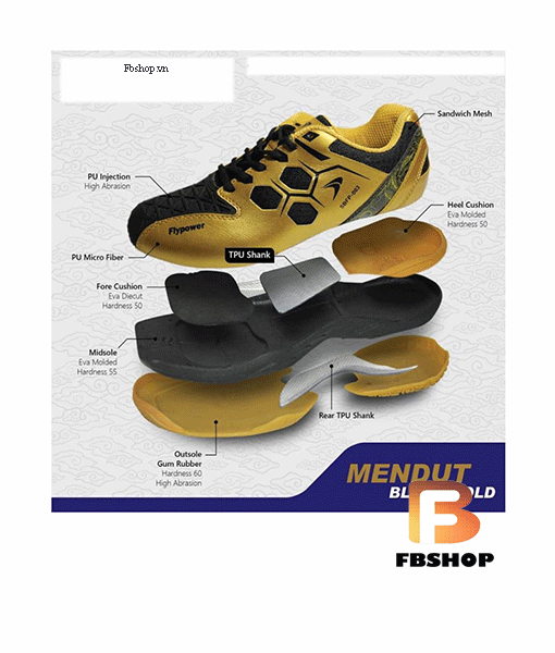 Giày cầu lông Flypower Mendut Black Gold