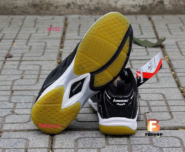 - Giày cầu lông Kawasaki k155 được thiết kế theo tiêu chuẩn Châu Âu. Form giày rộng, khỏe khoắn, bề ngang có thê nới rộng tùy theo điều chỉnh quai giày.