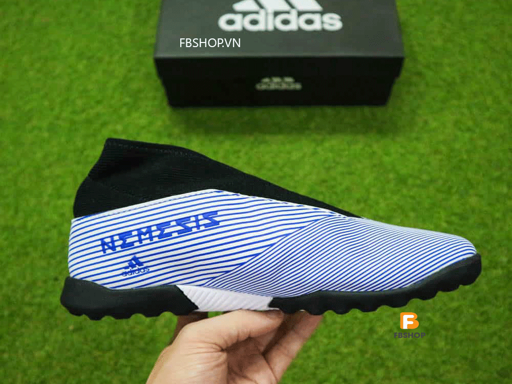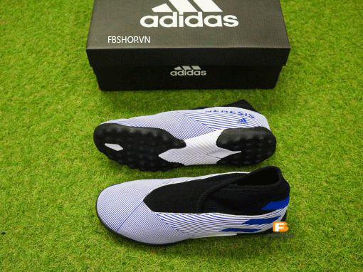 Giày đá bóng không dây Adidas Nemeziz 19.3 TF màu trắng sọc xanh