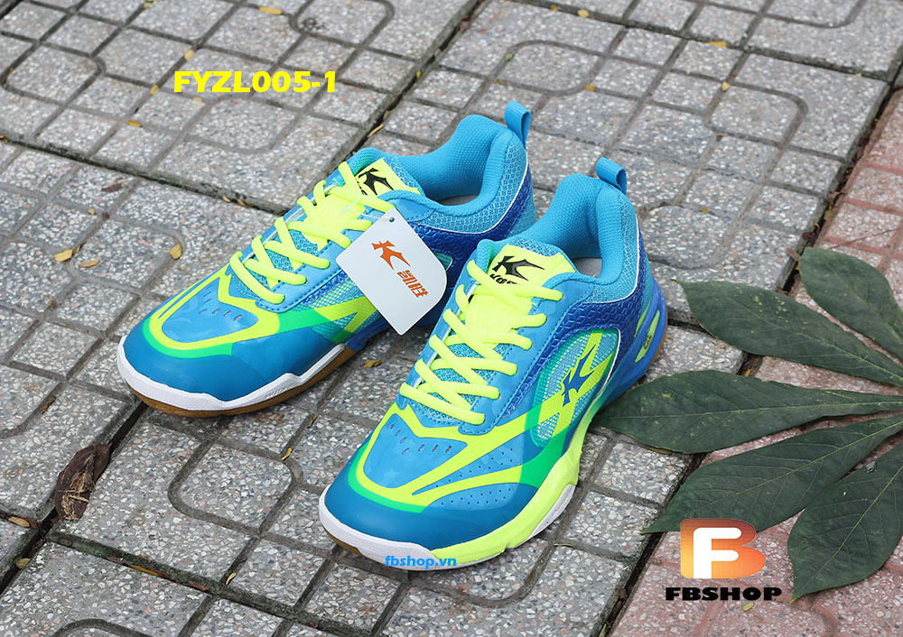 - Giày Kason FYZL005-1 với màu sắc nổi bật thu hút bởi màu xanh lam đan xen màu xanh chuối tạo nên điểm sáng khi bạn bước vào sân cầu.