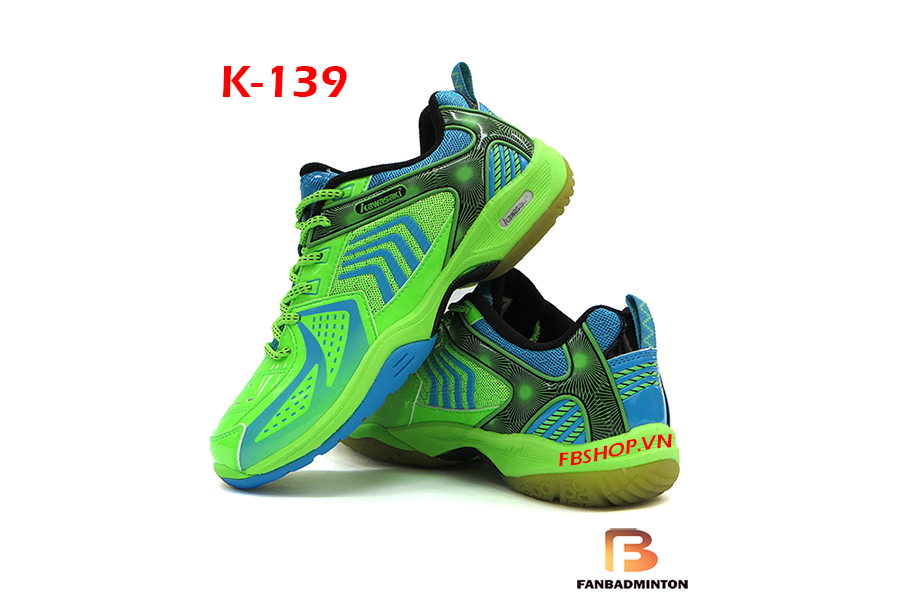 - Giày cầu lông Kawasaki K139 được thiết kế theo tiêu chuẩn Châu Âu. Form giày rộng, khỏe khoắn, bề ngang có thê nới rộng tùy theo điều chỉnh quai giày.