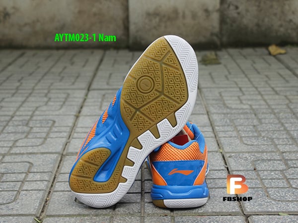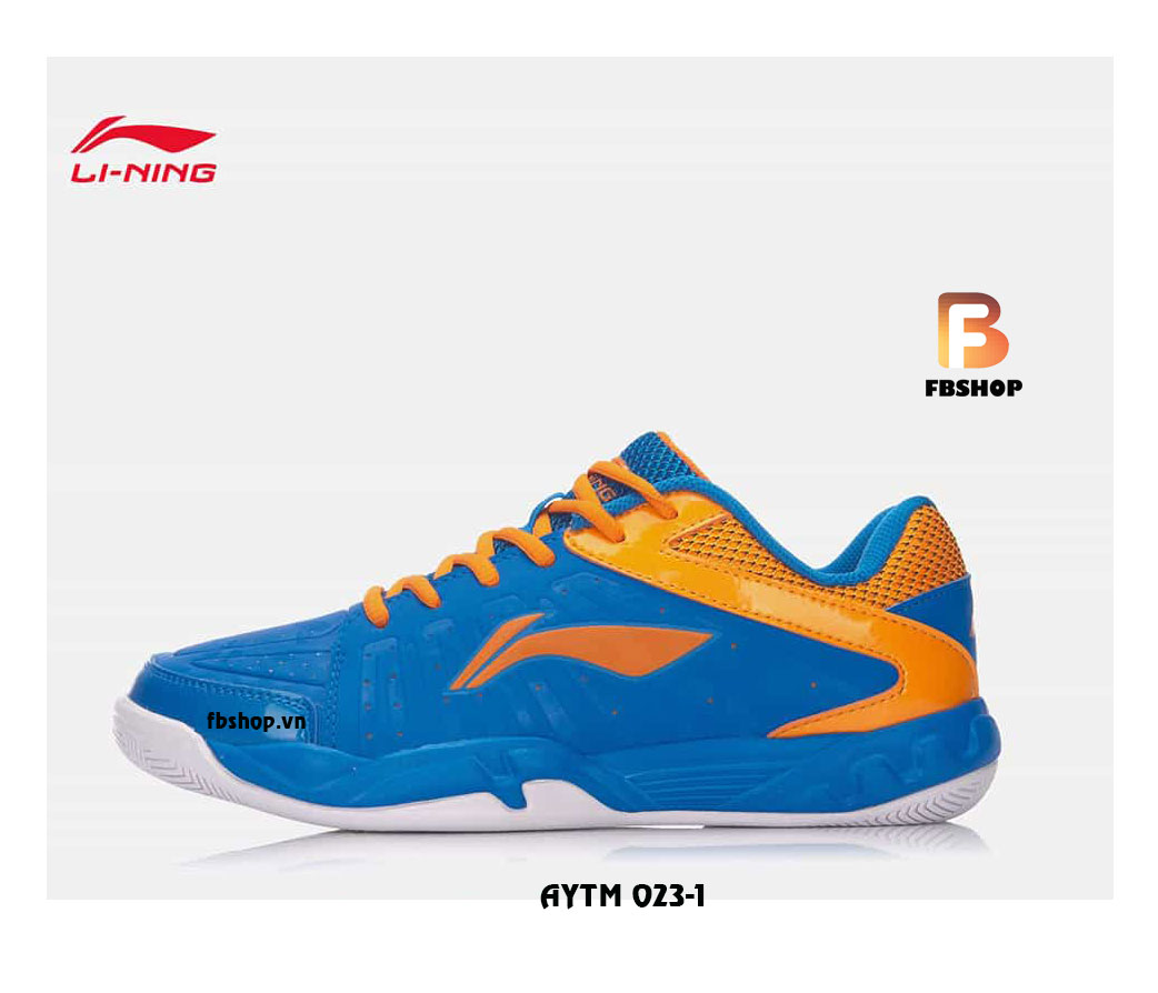 - Giày lining aytm023-1 là phiên bản thứ 1 của mẫu 023 với màu chủ đạo là màu xanh có biểu tượng và viền màu cam trắng