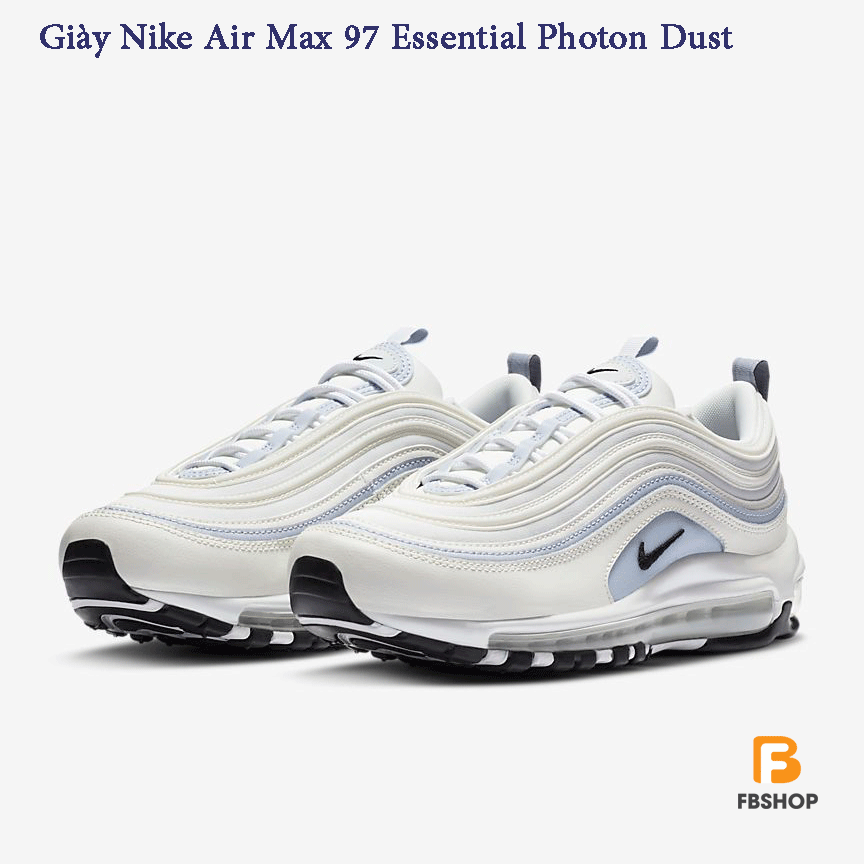 Giày Nike Air Max 97 Essential Photon Dust với thiết kế gợn sóng tương tự bản OG được lấy cảm hứng từ tàu cao tốc Nhật Bản, Giày Nike Air Max 97 Essential Photon Dust cho phép bạn đẩy phong cách của mình với tốc độ tối đa. Sử dụng bộ phận Nike Air có chiều dài đầy đủ mang tính cách mạng đã làm rung chuyển thế giới chạy bộ và thêm màu sắc tươi mới và các chi tiết sắc nét, nó cho phép bạn đi trong sự thoải mái hạng nhất..Với thiết kế này, toàn bộ phần chân của người sử dụng được bảo vệ với các đệm khí một cách đồng nhất. Đây là thiết kế huyền thoại của Nike. Cùng Fbshop đi xem chi tiết sản phẩm huyền thoại này nhé.