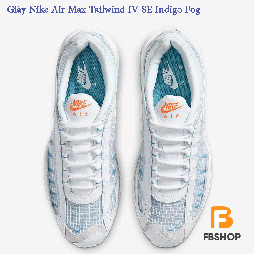 Giày Nike Air Max Tailwind IV SE Indigo Fog bị ảnh hưởng rất nhiều bởi Nike Air, Air Max Plus, nên mới có phong cách cổ điển của thập niên 90 với các chi tiết phản chiếu đưa OG lên một tầm cao mới. Phần trên có kết cấu phong phú sử dụng lưới và da có độ bóng cao, trong khi phần đế giữa màu trắng sắc nét có các mảng đệm có thể nhìn thấy để tạo sự thoải mái và năng lượng vô biên. Mời bạn đọc tham khảo cùng Fbshop nhé.