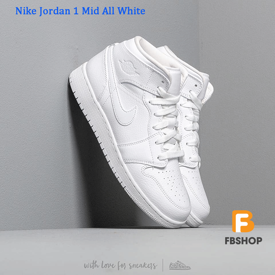 Giày Nike Jordan 1 Mid All White | Bật Sáng Ngoại Hình
