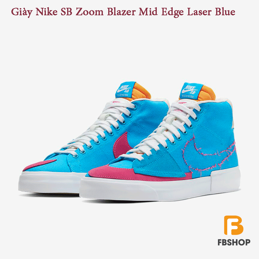 Giày Nike SB Zoom Blazer Mid Edge Laser Blue thiết kế một vòng quay DIY trên một đôi giày trượt mang tính biểu tượng. Giày Nike SB Zoom Blazer Mid Edge Laser Blue có một điểm khác biệt với những đôi giày trượt ván khác đó là các đường khâu bị sờn, lớp xốp lộ ra ngoài. Chính nhờ điều này và sự kết hợp của nhiều chất liệu mang đến cho đôi giày một vẻ ngoài độc đáo, cá tính. Mời bạn đọc tham khảo cùng FBshop nhé.