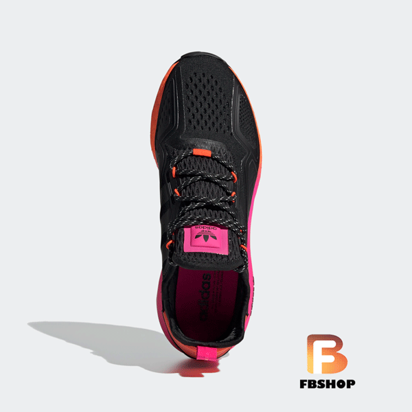 - Giày Sneaker Adidas ZX 2K Boost Black có mẫu mã khỏe khoắn, với tông màu đen là chủ đạo của sản phẩm, mang đến một phong cách khỏe khoắn và không sợ lấm bẩn. Bên cạnh đó, giày được phối các họa tiết màu hồng, cam ở hai bên hông giày, tạo sự cá tính cho sản phẩm.