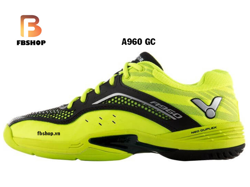 - Giày victor A960 GC khá ấn tượng bởi mẫu mã của nó. Giày được phối màu ấn tượng giữa tông màu xanh neon và đen, đem tới sự hài hòa về mẫu mã. Sản phẩm không chỉ sở hữu vẻ ngoài thời trang, trẻ trung mà còn đậm chất thể thao dành cho các bạn trẻ.
