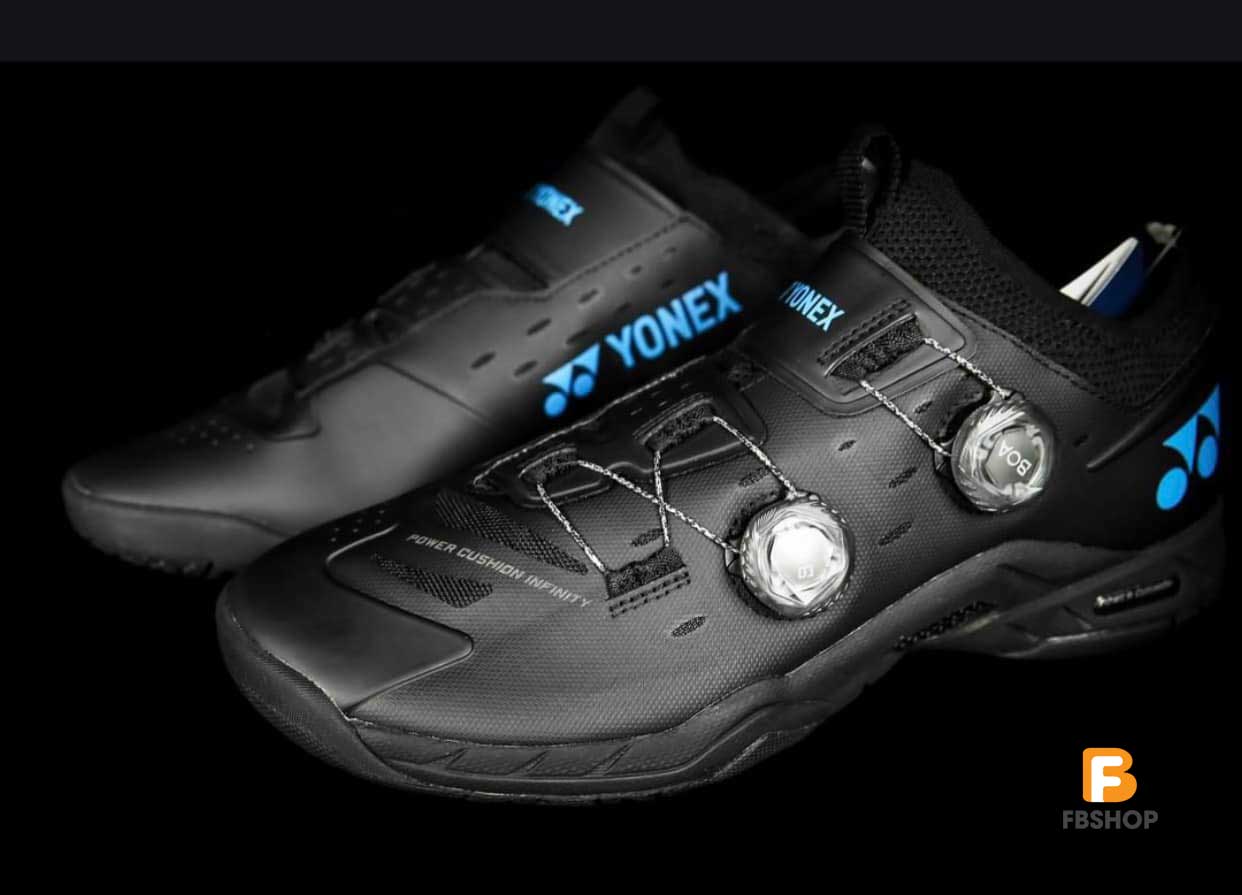 - Giày Yonex Power Cushion Infinity 2 Đen với cải tiến công nghệ DOUBLE BOA FIT SYSTEM: Là công nghệ tự thắt dây có trên giày cầu lông Yonex Power Cushion Infinity 2 – Xanh Dương chính hãng chỉ cần vặn nút BOA là có thể mang vào và tháo ra cho độ chính xác đến từng milimet giúp ôm chân vừa vặn hơn. Bên cạnh đó, giày còn được trang bị tận 2 nút vặn BOA với thiết kế cả 2 nút cùng nằm trên 2 dây đai kép nên sẽ cực dễ dàng cho người chơi tinh chỉnh sao cho vừa vặn nhất với đôi chân của mình.