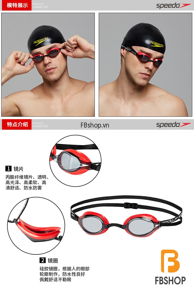 - Mắt kính được sản xuất chất liệu cao cấp của Speedo, ngoài ra còn được phủ một lớp chống sương mù theo đúng tiêu chuẩn, giảm tối đa bám nước và ảnh hưởng từ ánh sáng có hại cho mắt để đem đến cho bạn một tầm nhìn rộng và rõ ràng nhất khi dưới nước.