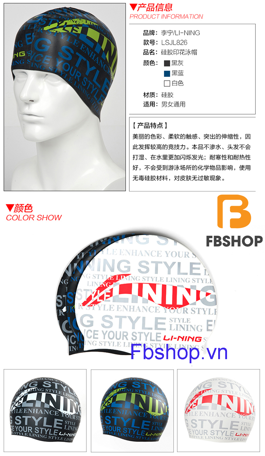 Mũ bơi silicone Lining họa tiết enhance your style là sản phẩm thuộc thương hiệu nổi tiếng top đầu thế giới Lining.