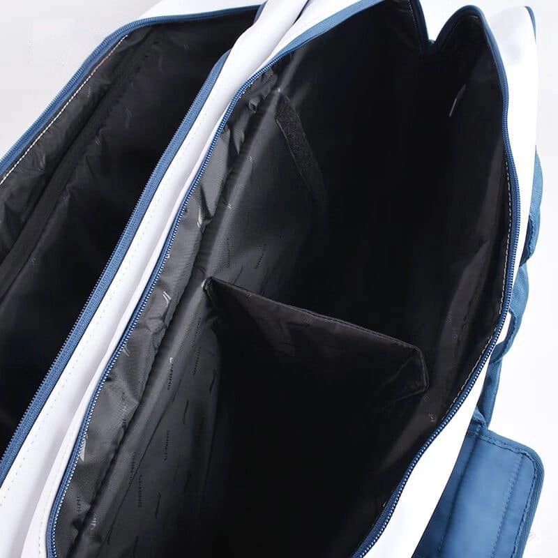 - 2 ngăn lớn giữa với sức chứa lớn để đựng vợt, giày, khăn, quần áo,… Ngăn được bọc miếng lót vải dù mỏng để tránh thấm nước vô cùng hiệu quả.