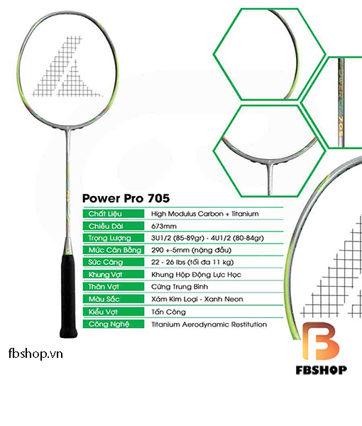 1. Thông số chi tiết vợt cầu Lông Pro Kennex Power Pro 705